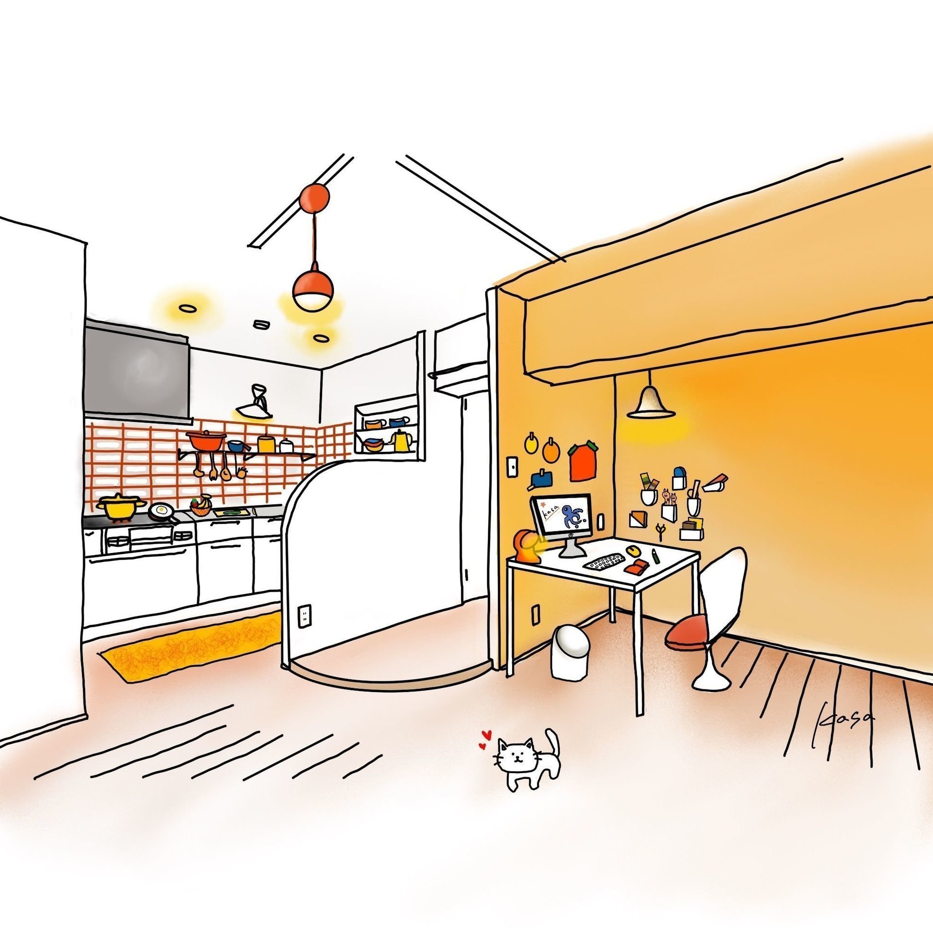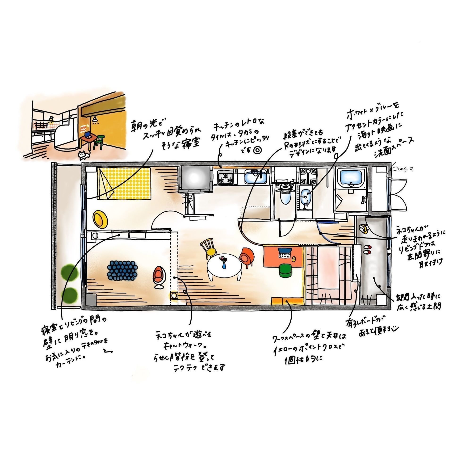○フランス映画に出てくるような、イエロー・ホワイト・オレンジ・ブルーを基調にしたデザイン空間。