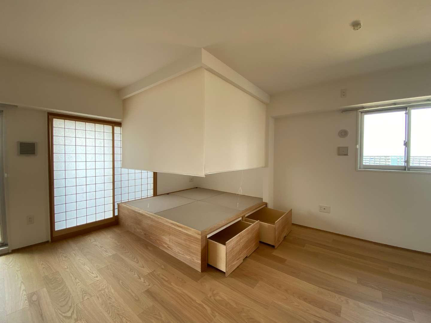 小上がりの畳は引出し収納と畳下の床下収納付きで収納力もしっかりと確保しておりロールスクリーンで個室として区切ることも可能!