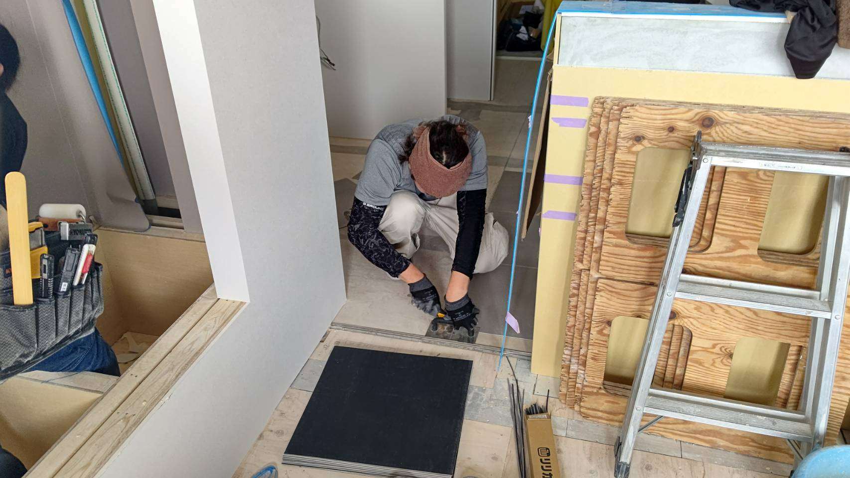 同時にフロアタイルやクッションフロアシートも施工されます。
