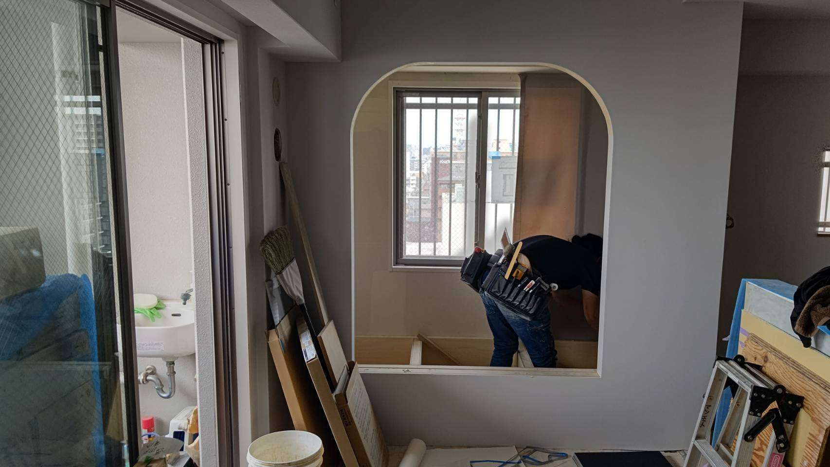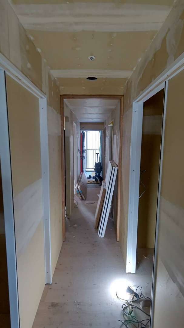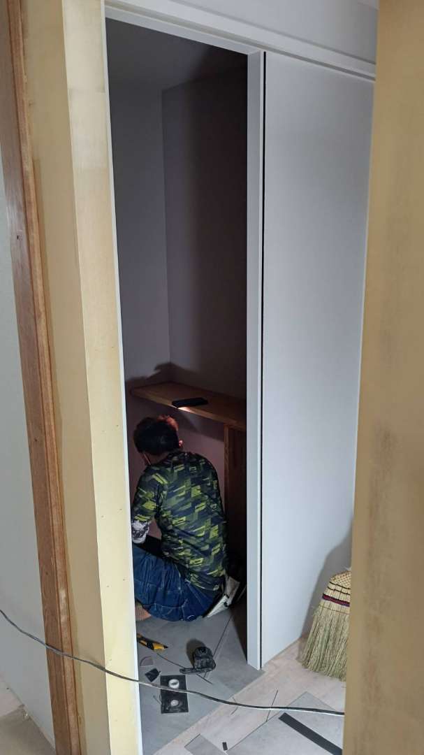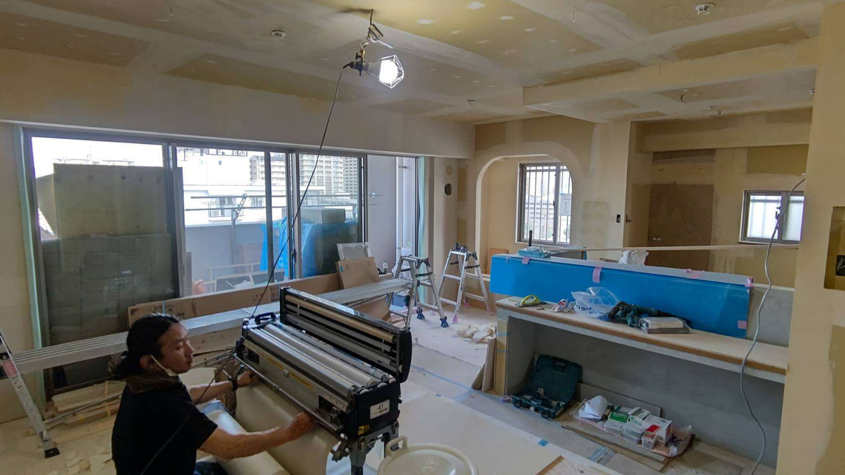 大阪市のマンションリノベーションも造作工事が終了し、いよいよ内装工事のメインであるクロス工事がスタートしております。