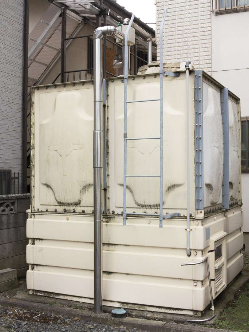 今回は高経年マンションに多く用いられた方式の高置水槽方式(重力方式)をご紹介いたします。よくマンションの屋上に受水槽といわれる大きな箱のようなモノがおかれているケースです。
