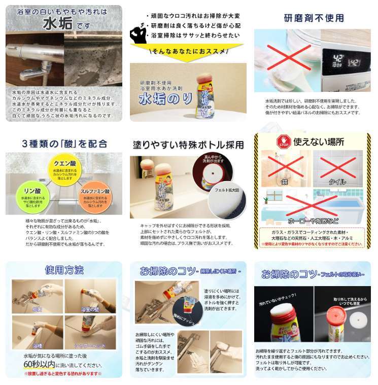 水垢のりが使えない鏡やホーロー、人工大理石、タイルにはこちらがオススメ!