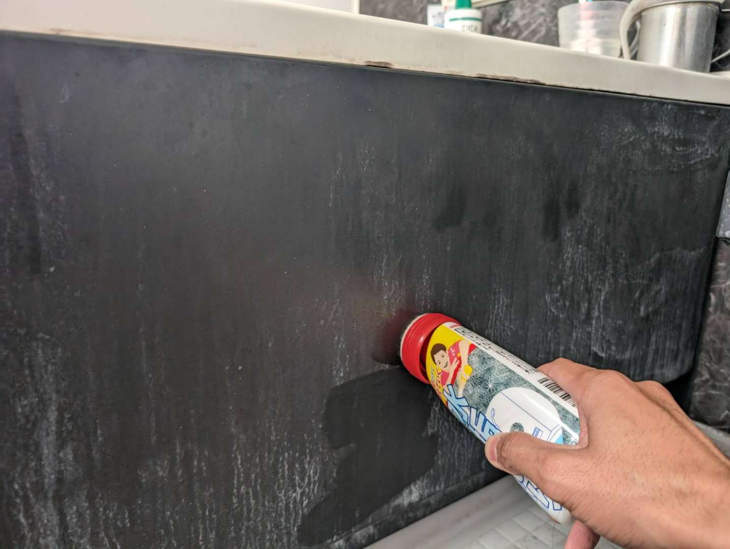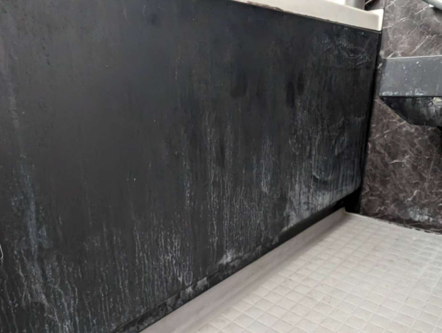 浴室のパネル(特に黒色)の場合に目立ってしまう石鹸カスや水垢も塗って水で流すだけで簡単に取れます。