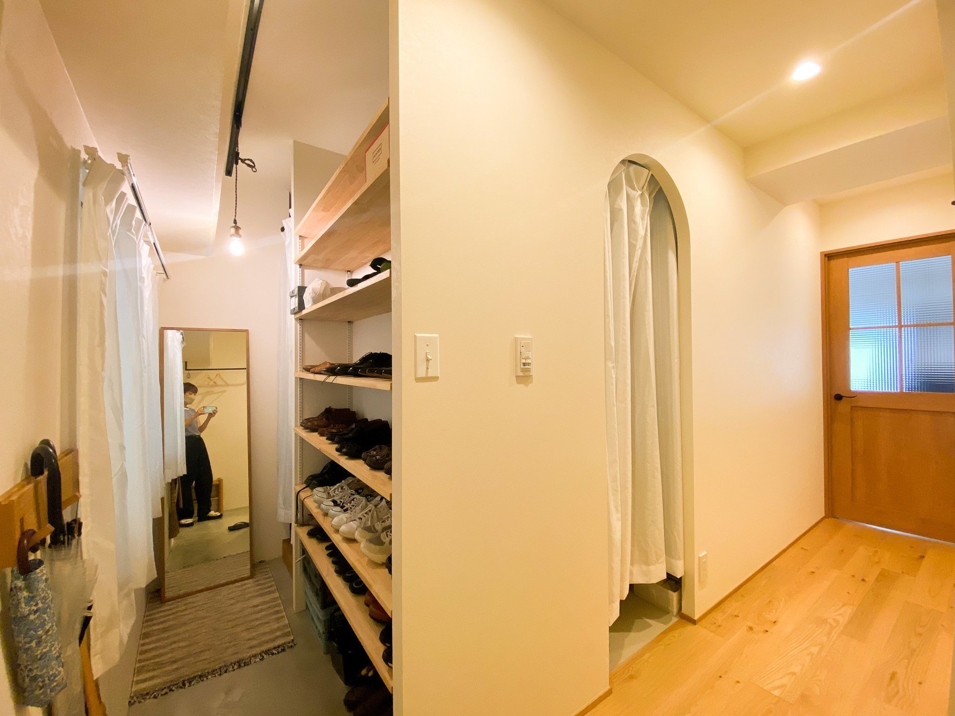玄関、そして寝室とリビングの仕切りがかわいくR型に大変身!