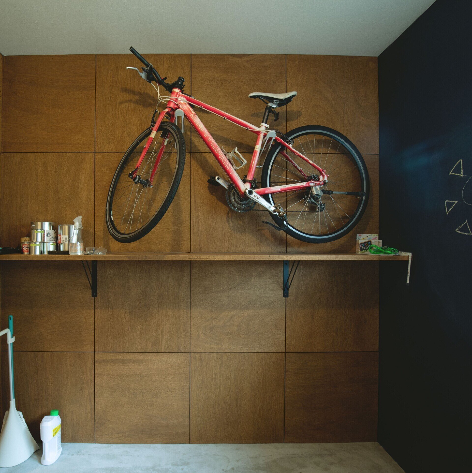 屋内であってもアウトドアギアを持ち込んだり、汚れを気にせず過ごせるように計画。