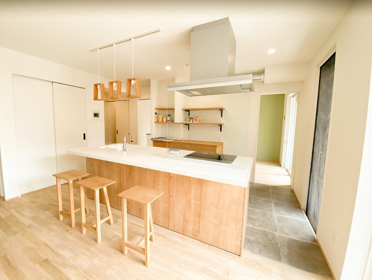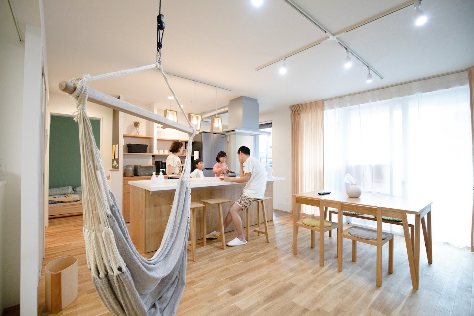 お子さま二人がまだ小さいので、おうちにいる間はお母さん、お父さんがニコニコ見守れるひろーいLDKに。