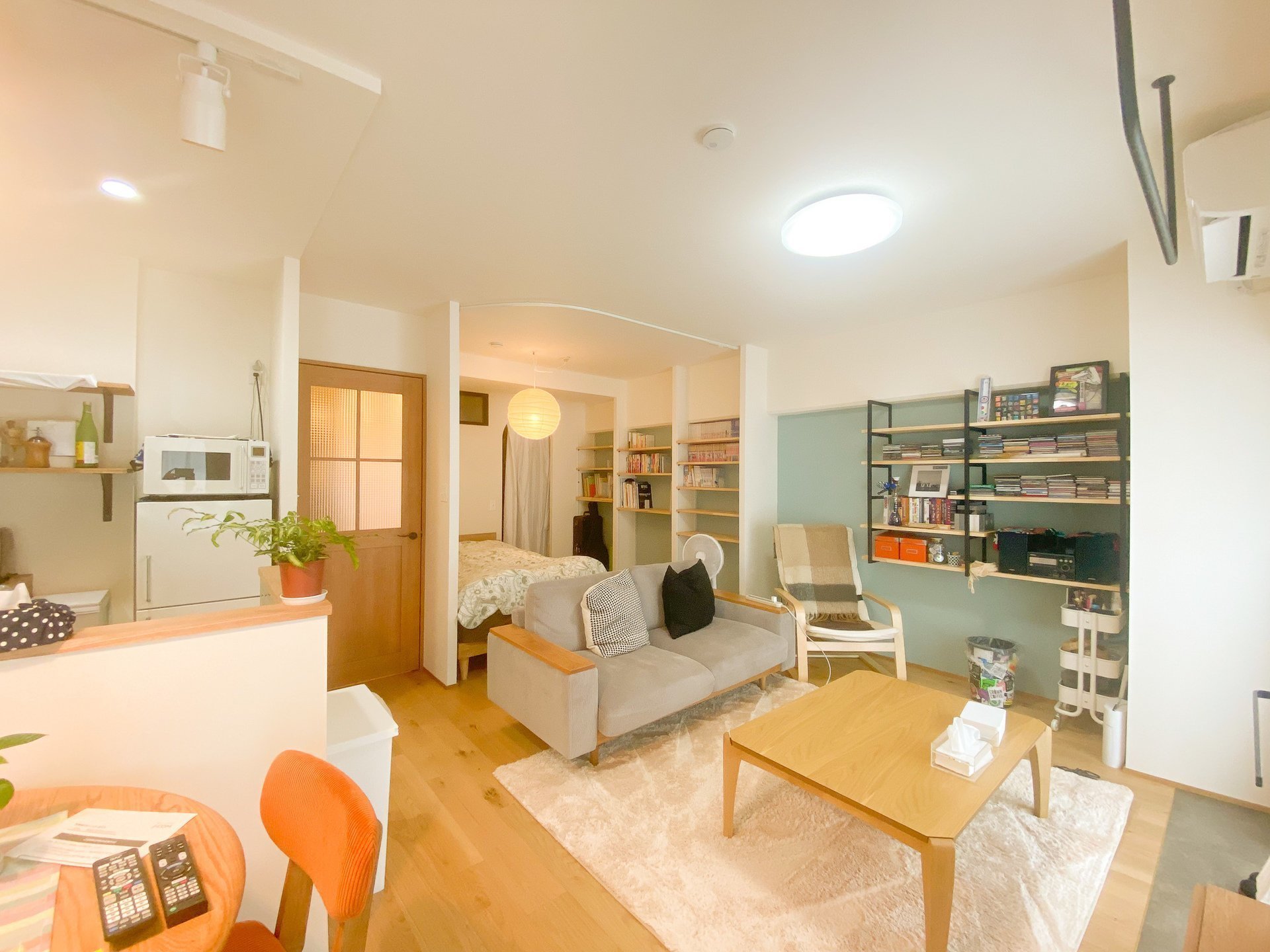 壁も抜いちゃえば、広く明るいリビングと寝室に。在宅ワークが多くなった今、仕事も生活も最高に楽しめる空間になりました。