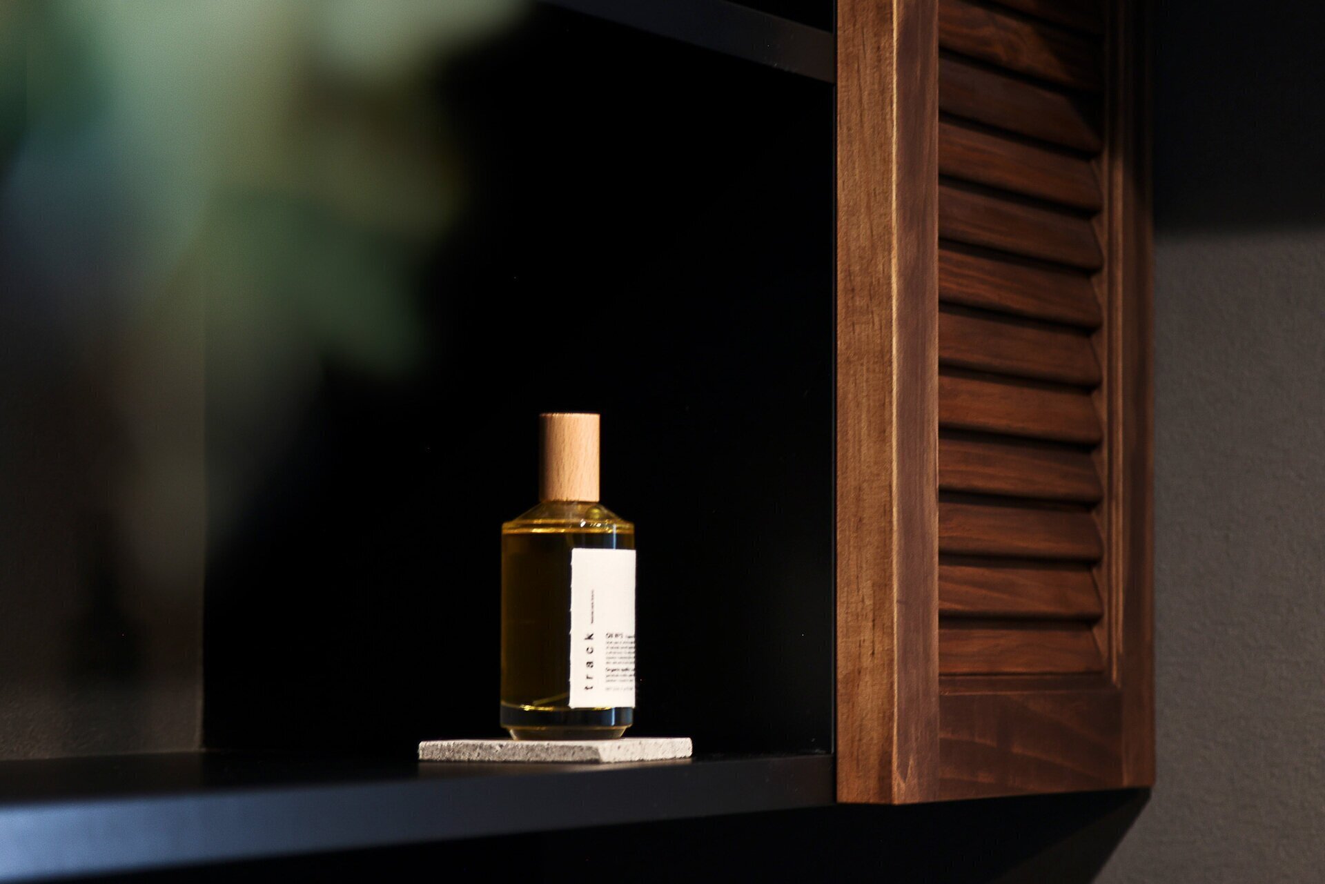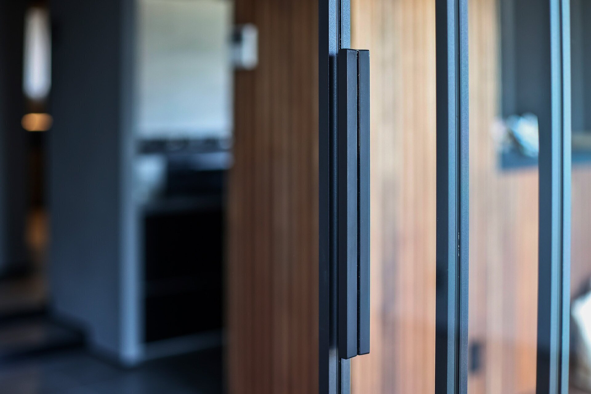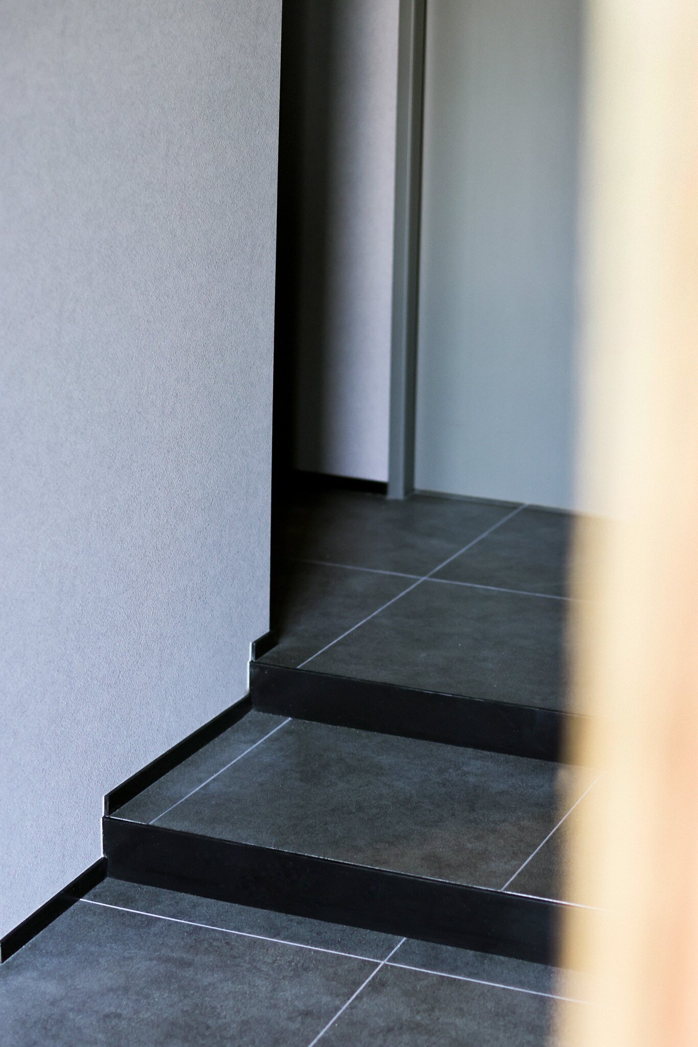 墨色の壁、マットなタイル、削ぎ落とされた光。
