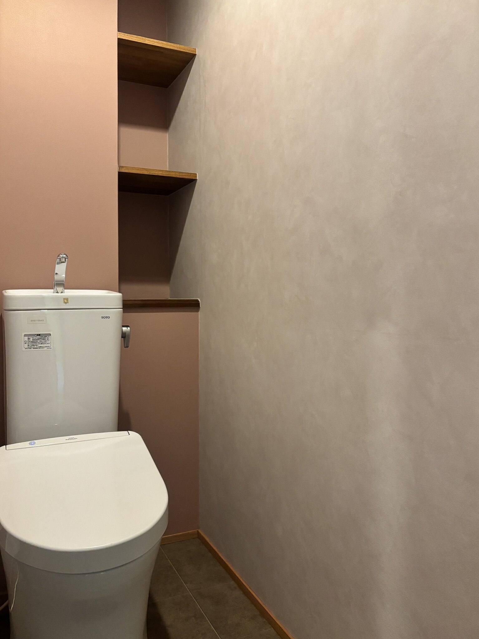 トイレ空間には、鮮やかなアクセントクロスで、