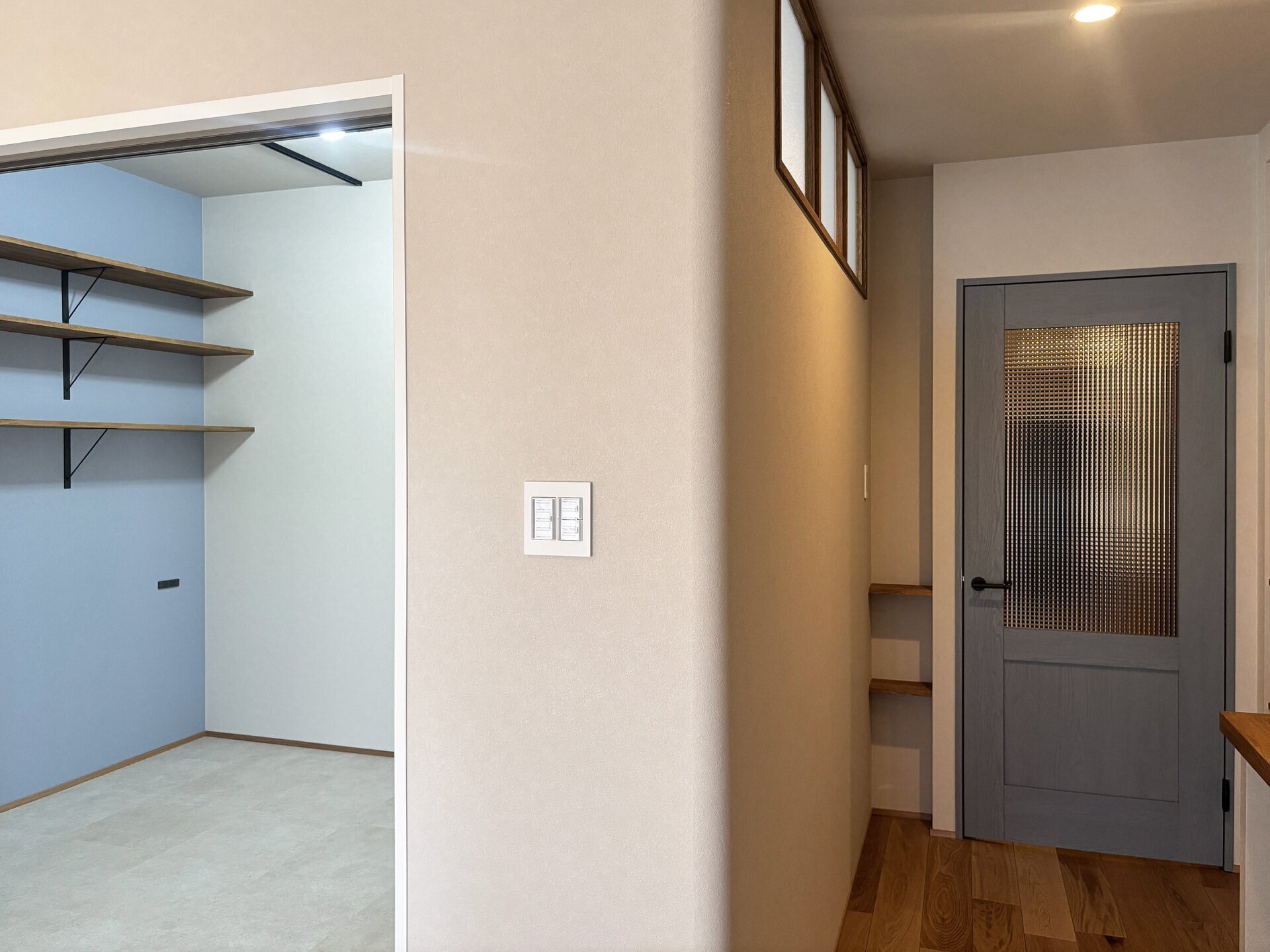 シューズクローク(SCL)へ開口や、リビングから見える壁の出隅には